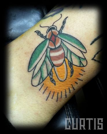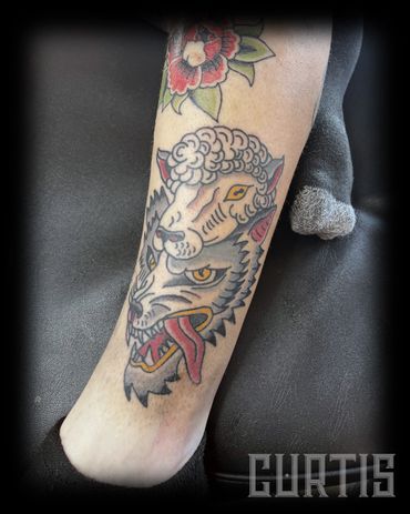 If he's not tattooing, you can find him making tattoo flash the old fashioned way of drawing and painting it by hand, or riding his motorcycle, but not since that guy rear ended him and totaled his bike, soooo... you can find him making tattoo flash the old fashioned way of drawing and painting it by hand, like I said.
